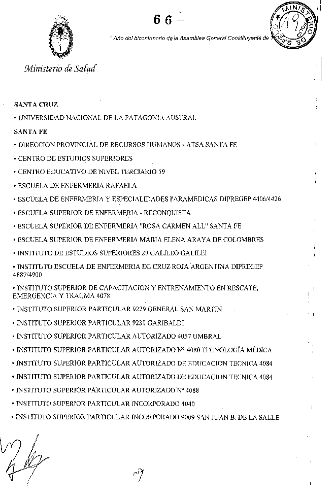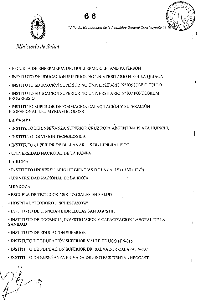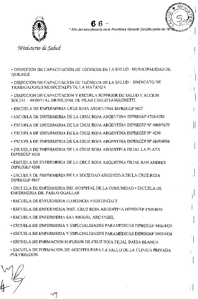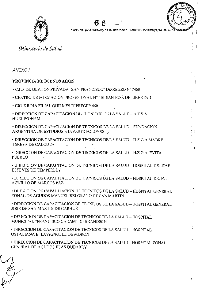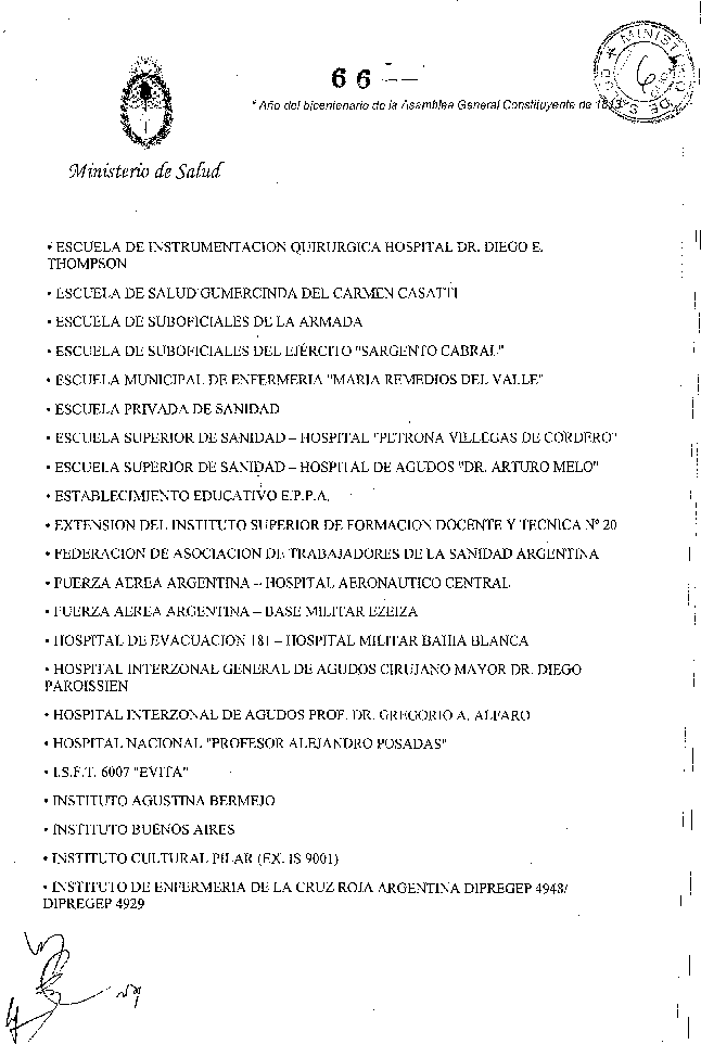 Que por las modificaciones realizadas en la Disposición SsPRF 20/09 y la Disposición SsPRF 13/11 se han incorporado al Anexo II nuevas instituciones formadoras de técnicos y auxiliares.