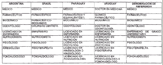 Que la denominación de los profesionales de la salud no es la misma en todos los Estados Partes y corresponde identificar las profesiones comunes para orientar el trabajo de armonización de las mismas.